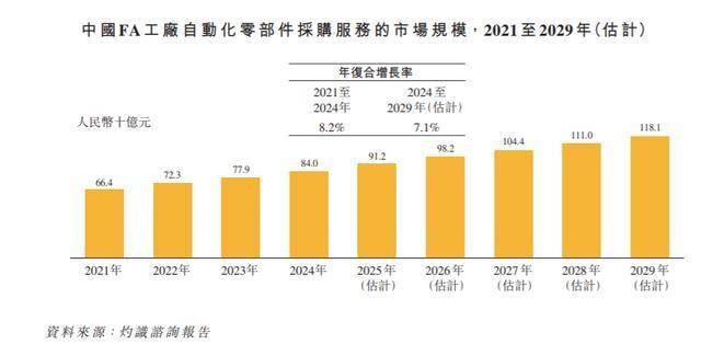 中国FA工场从动化零部件采购办事的市场规模由2021年的人平易近币664亿元添加至2024年的人平易近币840亿元,年复合增加率为8。2%。预期该市场将于2029年达到人平易近币1181亿元,前往搜狐,查看更多。
